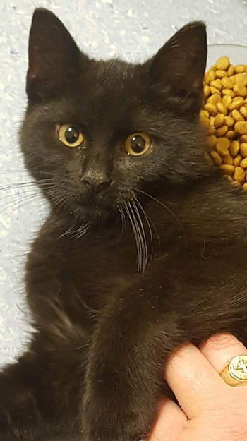 En ung katt, ukastrert og uten ID. Hvit på magen.