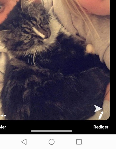 Mistet vår kjære Mango. Sterilisert hokatt. Flerfarget, langhåret, har hvite "nikers".
