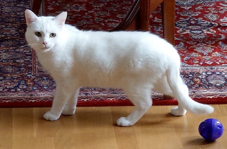Vanlig hvit huskatt type, men opprinnelig løskatt.