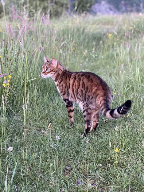 Brun leopardmønstret hannkatt var savnet i Hustadvika