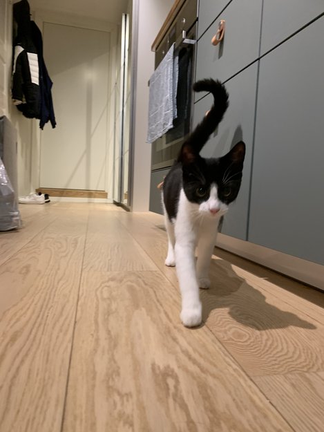 Fant en kattunge midt i bilveien i Kirkegaten i Sandviken. Den holdt på å bli påkjørt. Virker å være rundt 4-5 mnd og er ikke chippet.