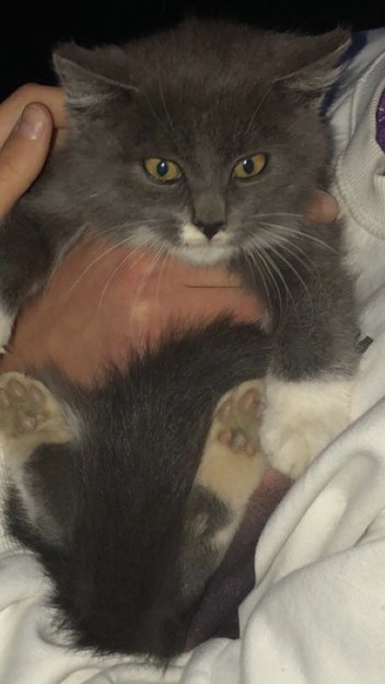 Fant en liten katt når vi var ute og gikk tur i går kveld. Vi skulle gå fra Frogner til Leirsund via. Børkeveien. Vi fant den et stykke fra bebyggelse og den satt inne i et kratt. Den mjauet kraftig, så vi trodde den var skadet. Den kom fren fra krattet etter en stund, og den var ikke skadet. Den mjauet hele tiden og fulgte etter oss. Den var redd og skeptisk en stund. Vi fikk kontakt og klappet den, og den ble veldig «tam» .