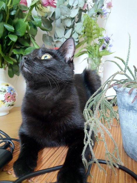 veldig snill, leken, kontaktsøkende og glad i mat.