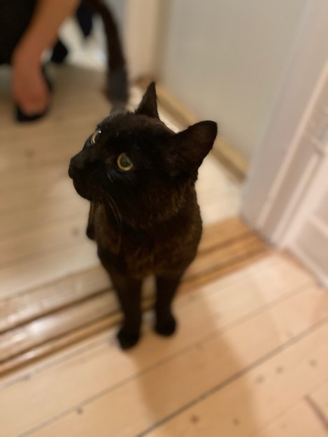 Sort hannkatt med mye brunt i pelsen. Ca 5år. Kastrert men ikke chippet. Snill og menneskekjær.