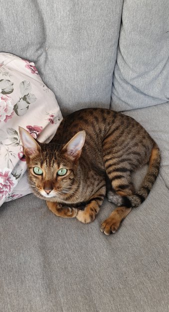 Smule er tigermønstret med prikker på ryggen/sidene. Han er veldig pratsom og mjauer høyt, og nysgjerrig og kosen. Han har grønne store øyne, store ører og lange ben. Fort at han kan ha sneket seg med i en bil eller er innelukket ett sted.