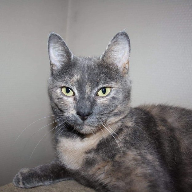 Katten dukket opp i grenda før jul 2019. Ble hentet av dyrebeskyttelsen da den fikk unger ute sommeren 2020.