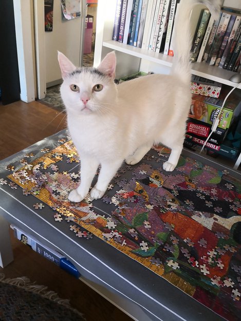 Slank og lang katte. Spesiell tegning i ansiktet.