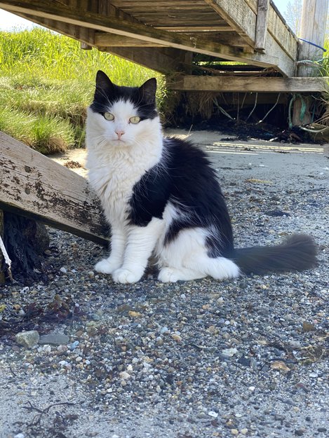 Veldig kosete og oppsøker alltid folk for å bli klappet. Går aldri langt, men oppholder seg i nærområdet. Hun er spesielt mye på åkeren bak Egge skole og i skogkanten ved åkeren.