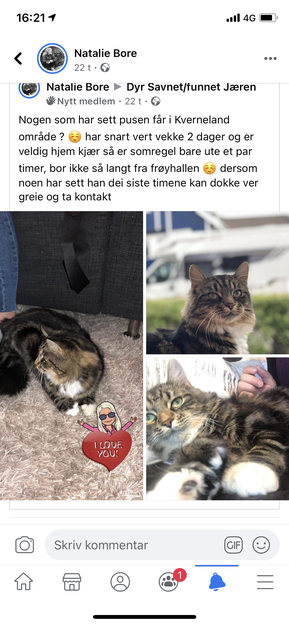 Katten har vert borte siden fredag, pleie bare vær borte et par timer ikke det en gang veldig hjem kjær