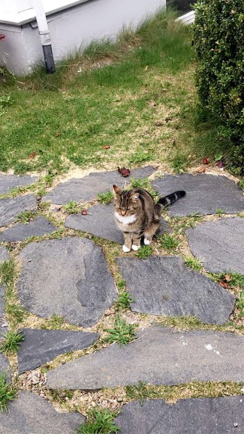 Katt kom til oss sent på natten rundt denne dagen (husker ikke helt dato men cirka) og tittet inn glassdøren og mjauet veldig høyt. Så veldig sulten ut så vi ga han litt mat, og han var veldig kosete/glad i mennesker så mulig han er savnet. Han har nå kommet til oss ganske ofte for å få mat og mjauer mye/vil ha oppmerksomhet og kos.
