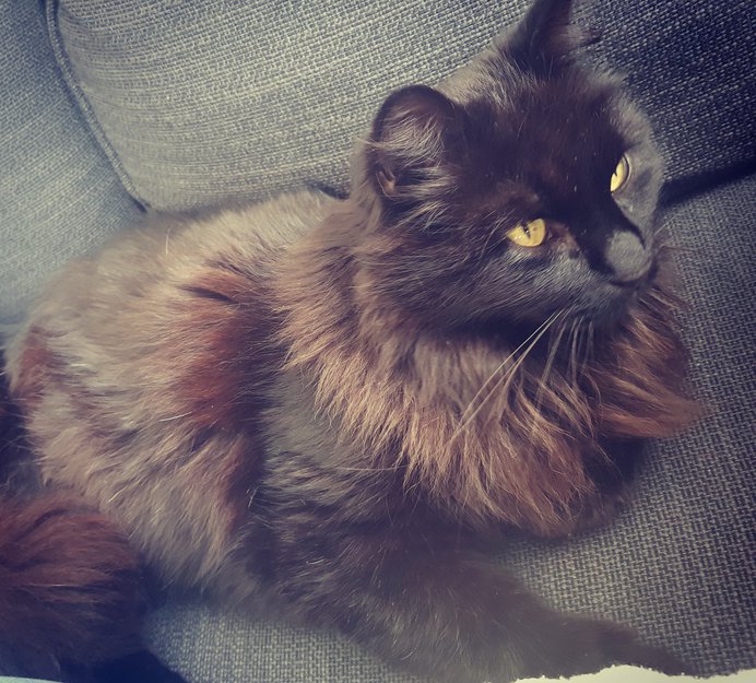 Gikk ut på onsdag kveld, har ikke kommet hjem. Helt svart med gul/grønne øyne. Sky til mennesker men veldig sosial til andre katter. Kan oppfattes som en hunnkatt da han er liten.