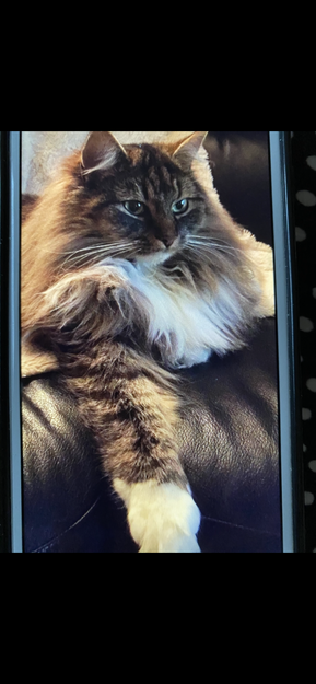 Mørk flekk på det ene bakbeinet. Prater masse, mørk nese , hvite sokker og mørke puter
