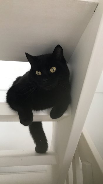 Mio er 5,5 år. Han er helt sort med gule øyne, og er en liten katt. Han har en liten bøy/knekk midt på halen. Mio er kastrert og chippet.