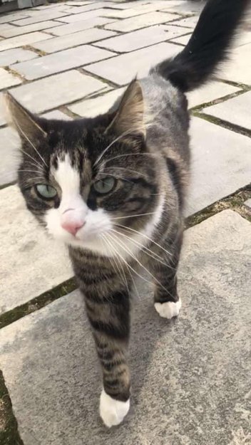 Hvis pels på alle potene, ser ut som hvite støvler på bakbena. Har ett arr på nesa men vet ikke om dette er så veldig synlig nå.