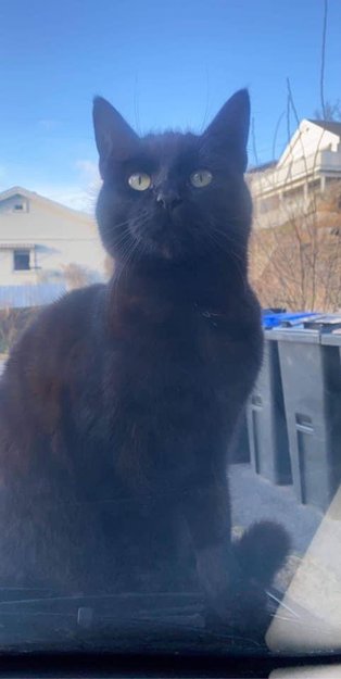 Hun er en svart liten katt som er litt over et år. Sterilisert men ikke chippet enda.