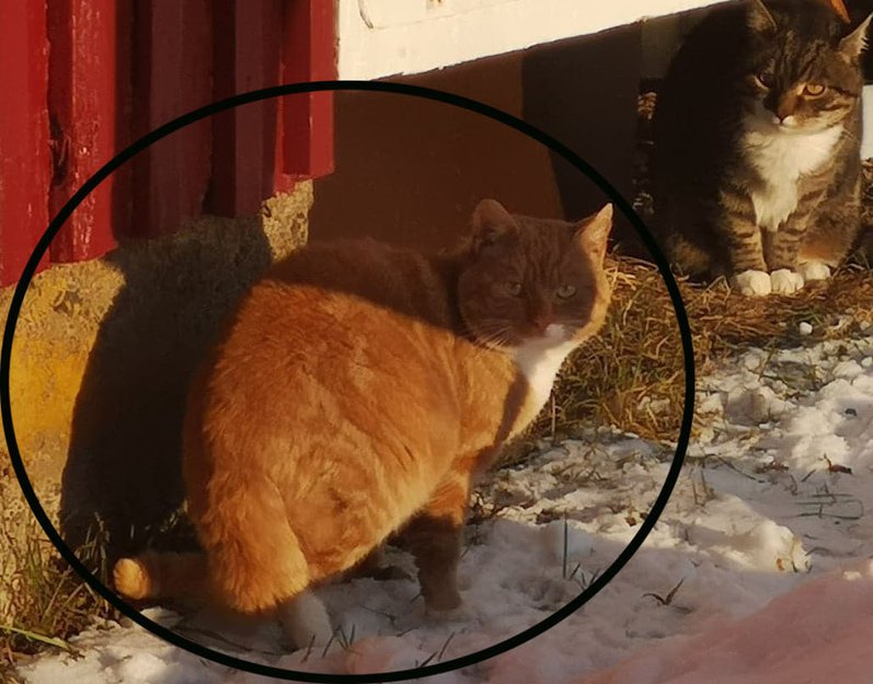 Det er en rød/oransje hannkatt, mest sannsynlig ukastrert. Den har vært i slåsskamp med en av mine katter og plaget andre nabokatter også. Jeg har likevel valgt å gi den mat ute i låven, da den mest sannsynlig ikke har noe hjem. Jeg har vært i kontakt med Dyrebeskyttelsen, som dessverre ikke har kapasitet til å hjelpe.