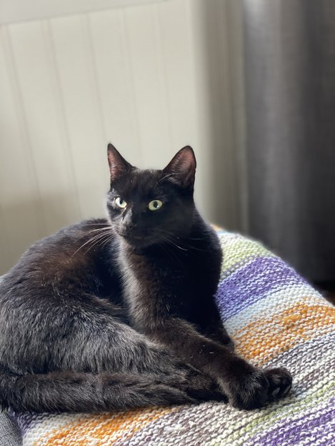 Bajas er 1 år og sterilisert. Han er helsvart, men kan være litt brunskjær og litt hvite hår om han kommer nære.