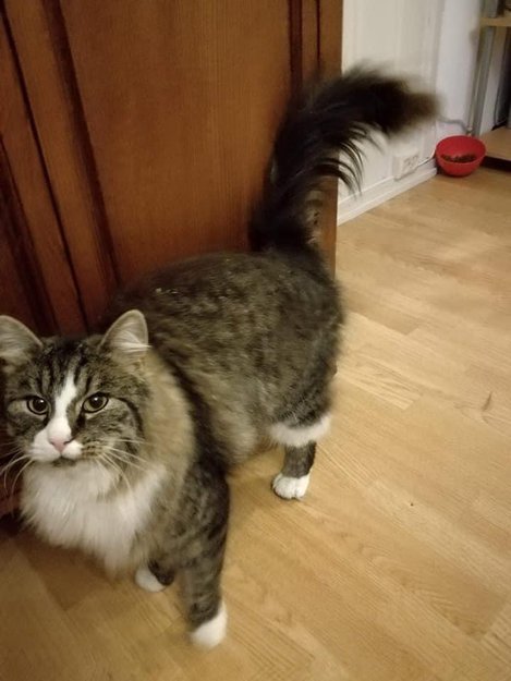 Han er ute katt fra før når han bodde hos gammel eieren. Stakk ut av døra den dagen og kom ikke tilbake . Lettet etter han når vi oppdaget at han ble borte, gikk ikke så lang tid etter vi så han sist. Han er ikke kjent med området.Bilde ute i området ga ikke noe resultat.