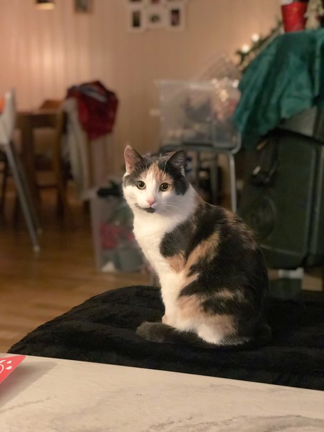 Hun er veldig liten og slank, tricolour men fargene er nesten litt på pastellsiden. Hun lyder sitt eget navn Sissi, og hun ELSKER servelat. Har en sort flekk på haken som gjør at det ser ut som hun alltid gaper.