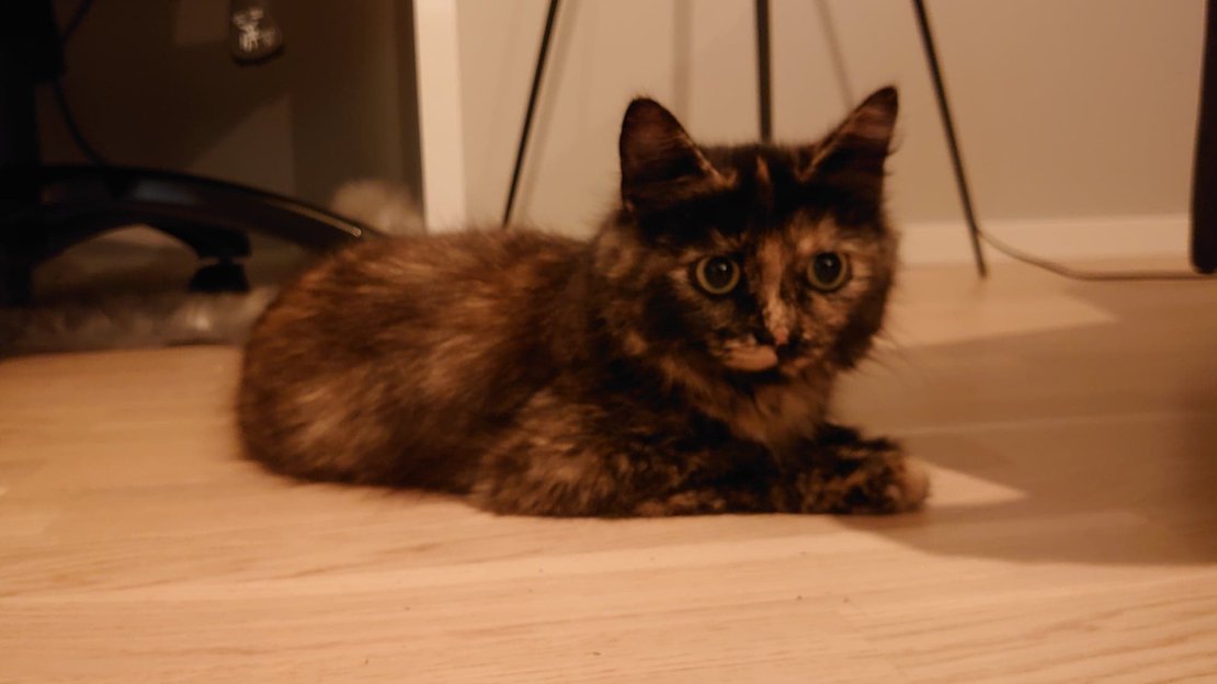 Fikk katten for 6 uker siden. Har den siste uken vært ute på små lufteturer, men hun har aldri gått lengre enn vår og naboens platt. Denne kvelden gikk hun lengre, og vi fikk ikke henne inn igjen. Lot henne være ute og håpte at hun snart kom på døren. Hun er ikke kjent i området.