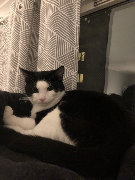 Svart og hvit ung hannkatt, veldig fin og myk pels