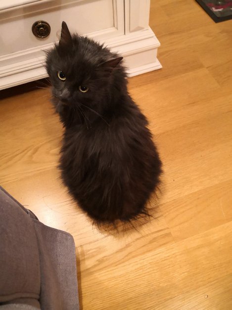 Katten var chippet og eier er kontaktet. Hører til på går i Årnes området og hadde forvirret seg helt til Oppaker.