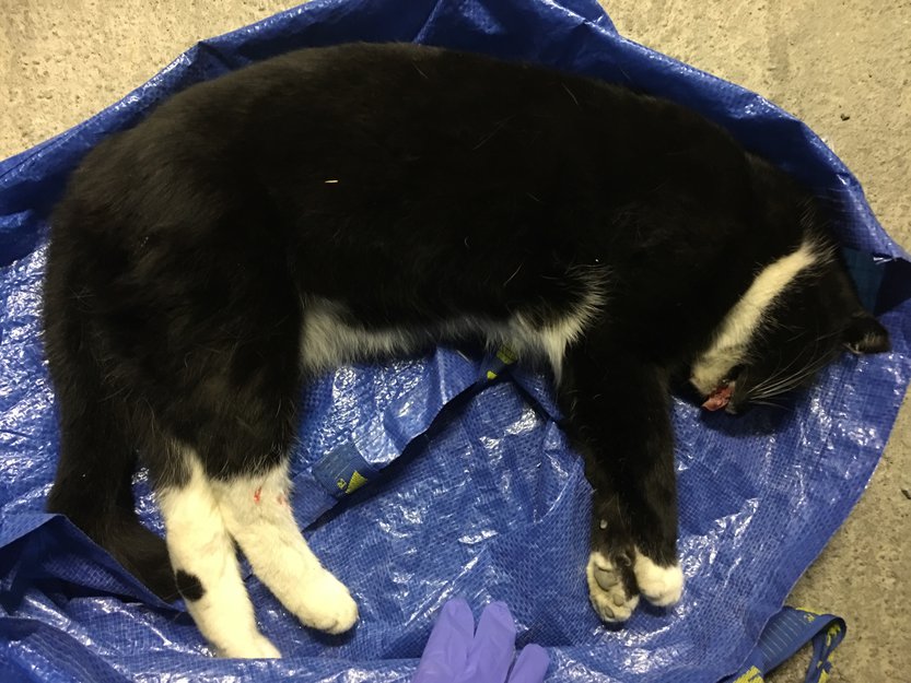 Katt funnet (død) i Tranmelsvegen på Melhus. Sort og hvit, spesielt kjennetegn er sort flekk på den ene bakfoten. Katten er umerket. Vi har flere bilder for identifisering. Katten oppbevares i fryser for en periode. Vi ønsker kontakt med eier.