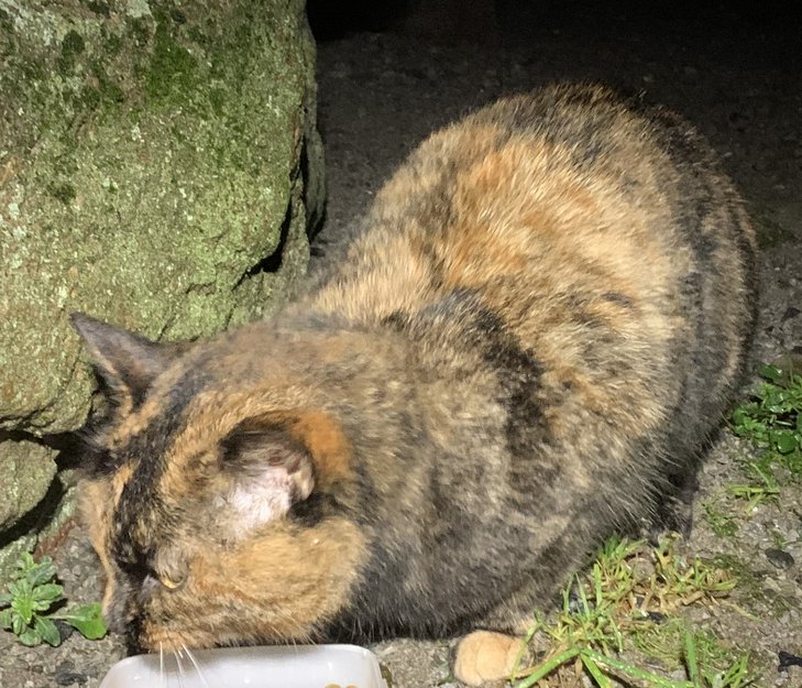 Katta har tatt tilhold på bondegård i Vestbygda i Skoger. Den har Blott observert her siden seinsommeren/høsten, og mye siden desember. Fått mat siden midten av desember. Glupsk etter mat.