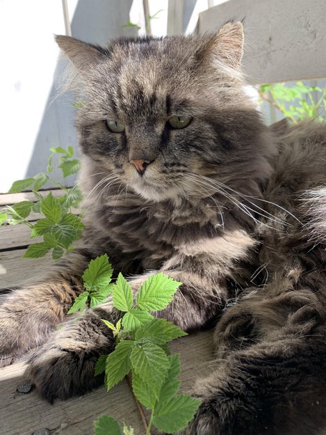 Ser litt gammel og lei seg ut, men er en av verdens fine puser. Har nok levd ute i mange år før vi tok han til oss etter at han bare dukket opp en dag. Litt sky men matglad! Sikler litt. Han er en litt bred plugg.😻