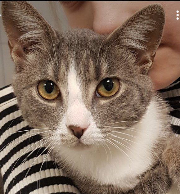 Litt striper i pelsen. Et svakt mørkt område på den ene siden på det hvite i ansiktet.