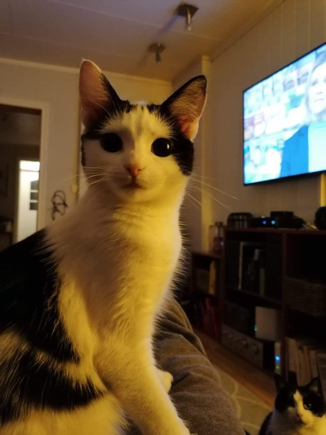 Hun er veldig liten av størrelse. Hun er svart og hvit. Hun er veldig nysgjerrig av seg og kommer gjerne bort å hilser på andre mennesker. Hun er lett å lokke til seg.