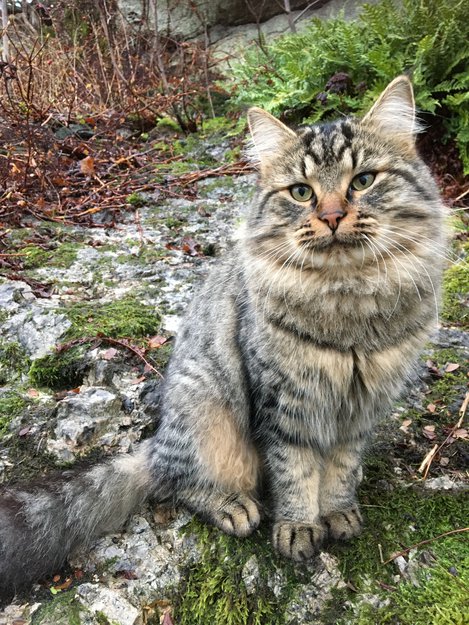 Roxy er veldig rolig og kjælen, han trekker unna ved støy og mye folk.