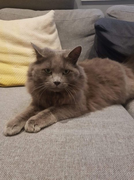 Bernie er en utekatt som ofte kan være ute noen dager før han kommer hjem. Men på denne tiden av året kommer han alltid hjem om kveldene. Han er grå langhåret, ca 5 kg og svært kontaktsøkende. Er kastrert men ikke chippet.