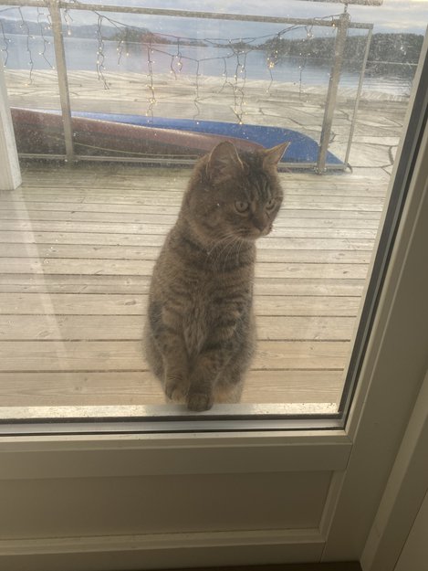 Virker som hun er vant å være innekatt - Vil ikke gå hjem, sitte på terrasse og vente på at vi skal åpne døren og hun skal inne igjen.