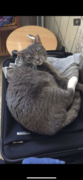 Hun har ett hakk i venstre øret, og litt tigeraktig mønster i ansiktet. Lysegrå med hvite poter, lyder navnet Zissi.