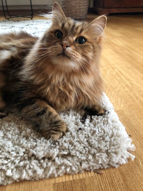 Katten kom hjem i natt etter 4 lange netter ute i kulda. Full av is og snø, men ellers frisk og rask:)