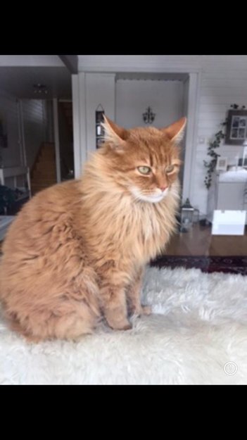Pusur har ikke kommet inn etter en luftetur ut søndag 17. januar 0830. Han liker seg best inne om vinteren. Kan være innelåst i en garasje eller lign.