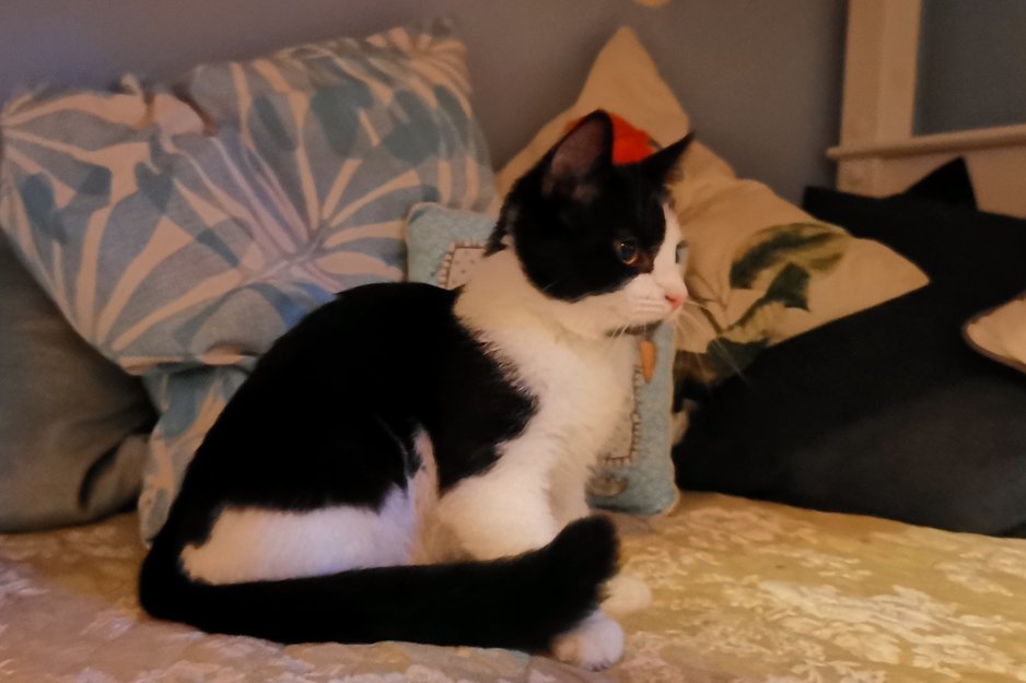 Svart og hvit kattunge, tipper 4-6 mnd.