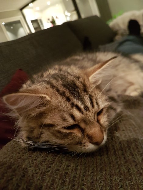 Katt med stor løvemanke,lang pels.Er sky og ikke kontaktsøkende.