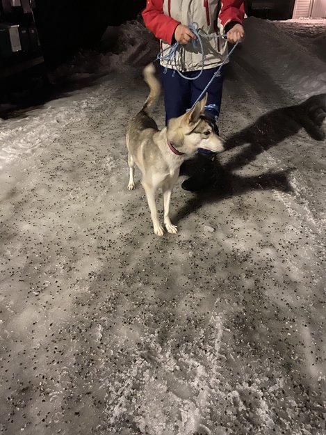Søt og snill huskyjente funnet mellom 2230-2300 på Teiemoen på Råholt. Ungjente tipper jeg. Rødt/rosa/mørkerødt farge på halsbånd, ingen telefonnummer på båndet. Båndet er av merket Hunter.