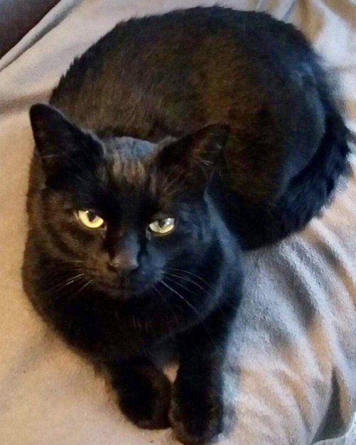 Den er helt sort. Det er en kraftig katt. Han er redd for fremmede , særlig menn. Den er veldig pratsom.