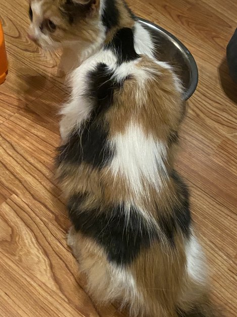 Kommet seg inn i katteluka. Redd, tynn og avmagret.