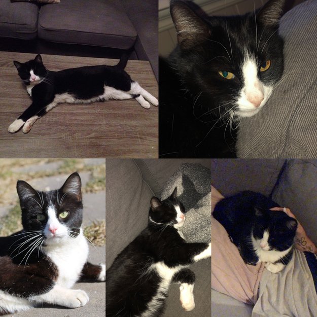 Han er svar og hvit og lyder navnet LabbeTuss, han skal da være rundt 7-8 år gammel. han kan være litt sjenert og har tidligere vært veldig kosen. Han var også veldig glad i å gå inn i andre folk sine hus. Og kan også være litt skvette på høye lyder og bråe bevegelser