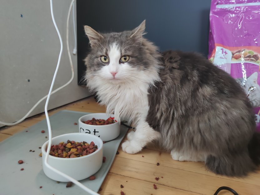 Katten har vært innom av og til og spist av min katts mat siden i fjord høst, men nyleg er den blitt særs rufsete i pelsen med mye floker og lignende, så frykter at noen kanskje savner pusen sin.