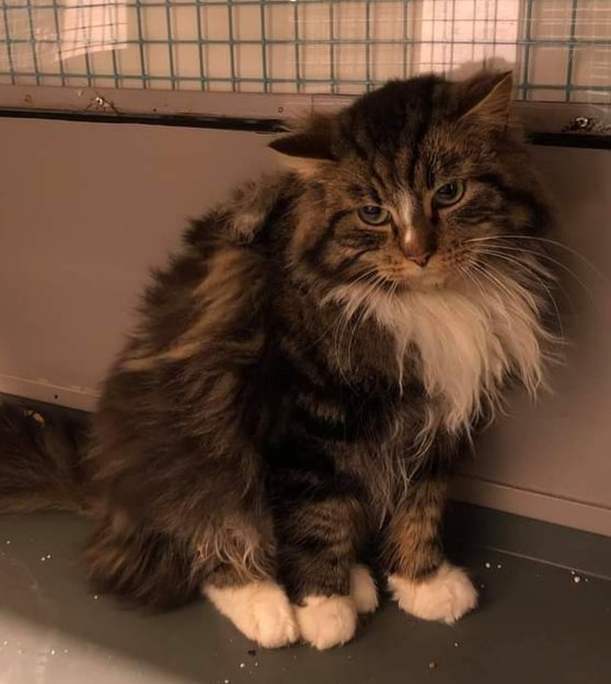 Tigret/grå/hvit hannkatt ble funnet i Skaun