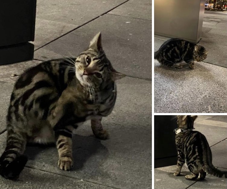 En Bengalkatt er løs på Aker Brygge v/torget utenfor Sorgenfri. Kosen og god, så ikke ut som den frøs og var leken.