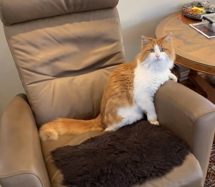 Oransje og hvit, tofarget pus. Har en «splitt» i øret. Lyder navnet Herman.