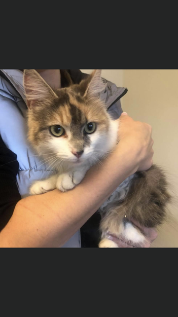 Tricolor hunnkatt har oppholdt seg på Haukerød siden oktober 2020. Har blitt etterlyst eier via Din Dyreklinikk i oktober. Ikke chippet. Oppholdt seg i garasje på Haukerød. Tam og kosete. Ca 1 år gammel.