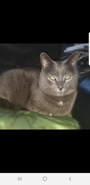 Grå korthåret kastrert hannkatt med chip.12 år gammel,hvit flekk på brystet.forvant 2 januar 2019 .kosete og sosial