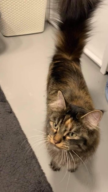 Hun gikk ut som vanlig på ettermiddagen. Har ikke kommet hjem. Vi har vært ute å ropt etter henne i nærområde uten svar fra henne. Hun pleier å komme på tilkalling